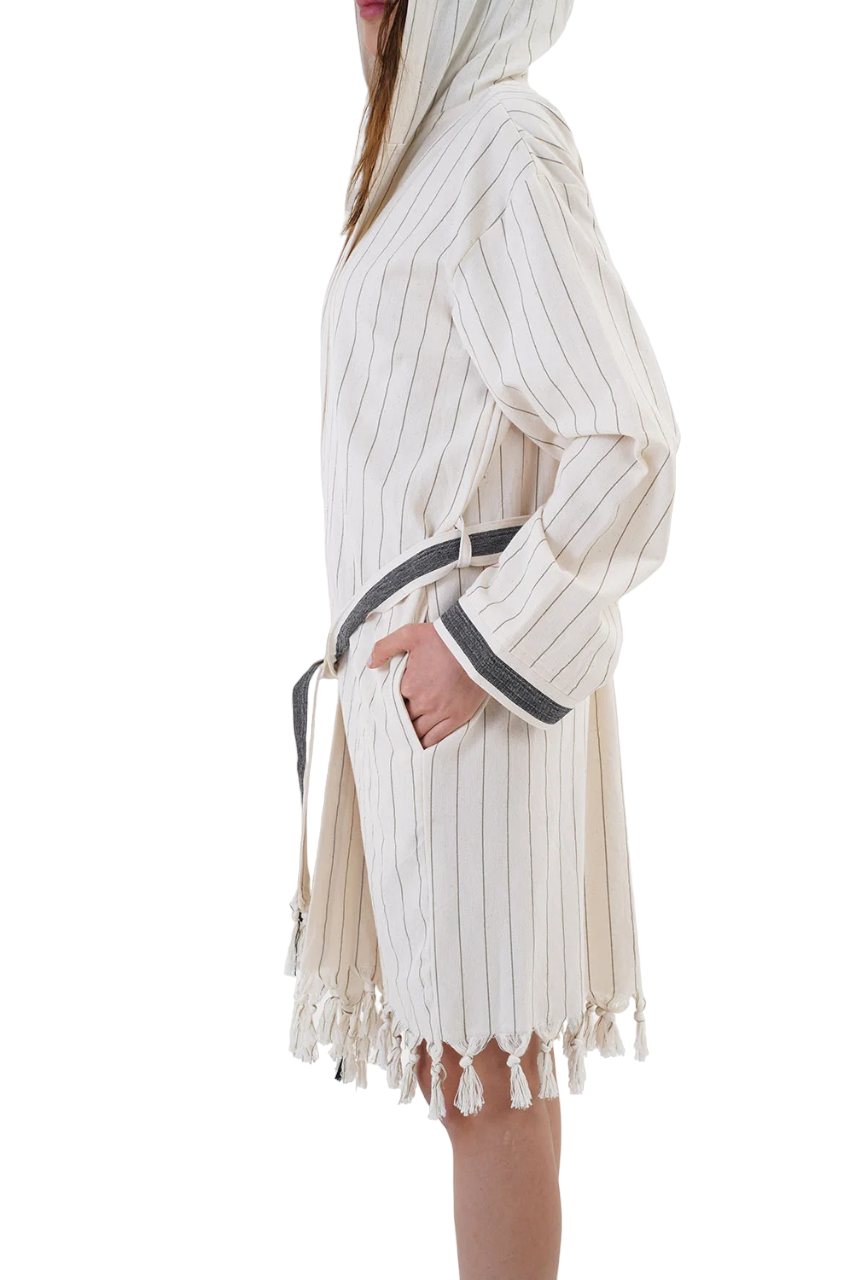 Reflecting the essence of traditional Anatolian weaving arts and designed with the modern lifestyle in mind, this pestemal bathrobe enriches your daily rituals. Made from 100% cotton with an OEKO-TEX certification, it represents a choice that respects both your health and the environment.